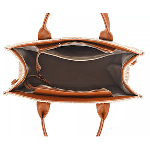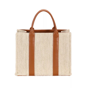 This square woven tote handbag is a trendy and stylish accessory. The woven design adds a unique and bohemian touch to any outfit. The square shape provides ample space for all your essentials. Perfect for carrying your belongings in style for a day out or a casual event. A must-have handbag for those who appreciate both fashion and functionality.