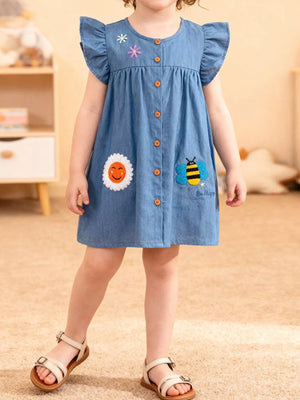 Children's Button Front Ruffle Sleeve· Denim Dress