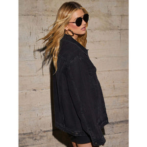 Button Up Collared Neck Denim Jacket