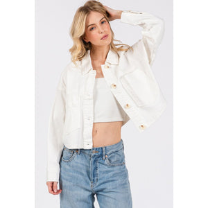 bytos Button Down Cropped Denim Jacket with Patch Pockets