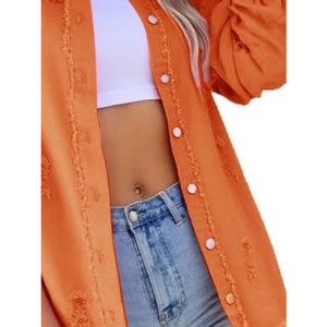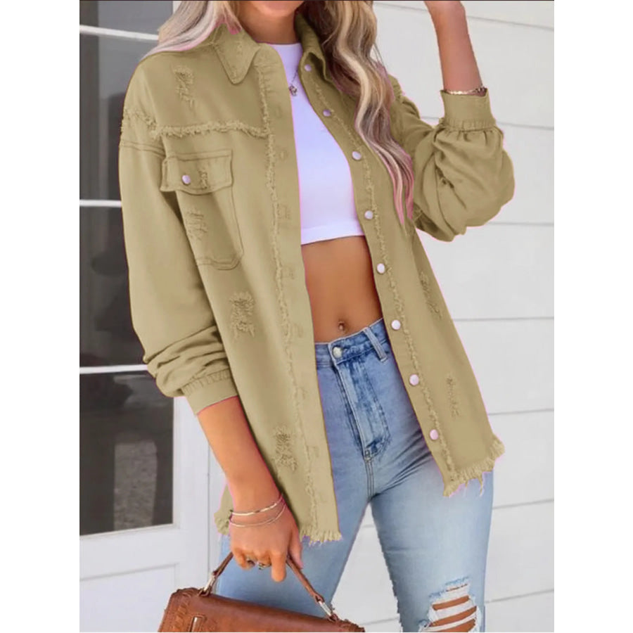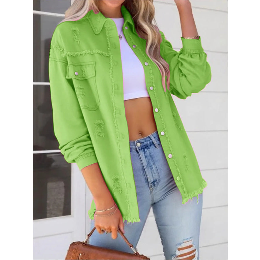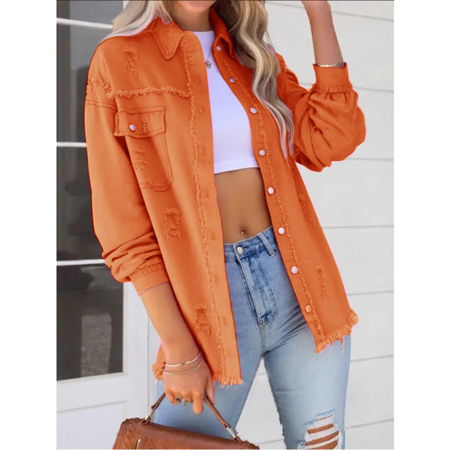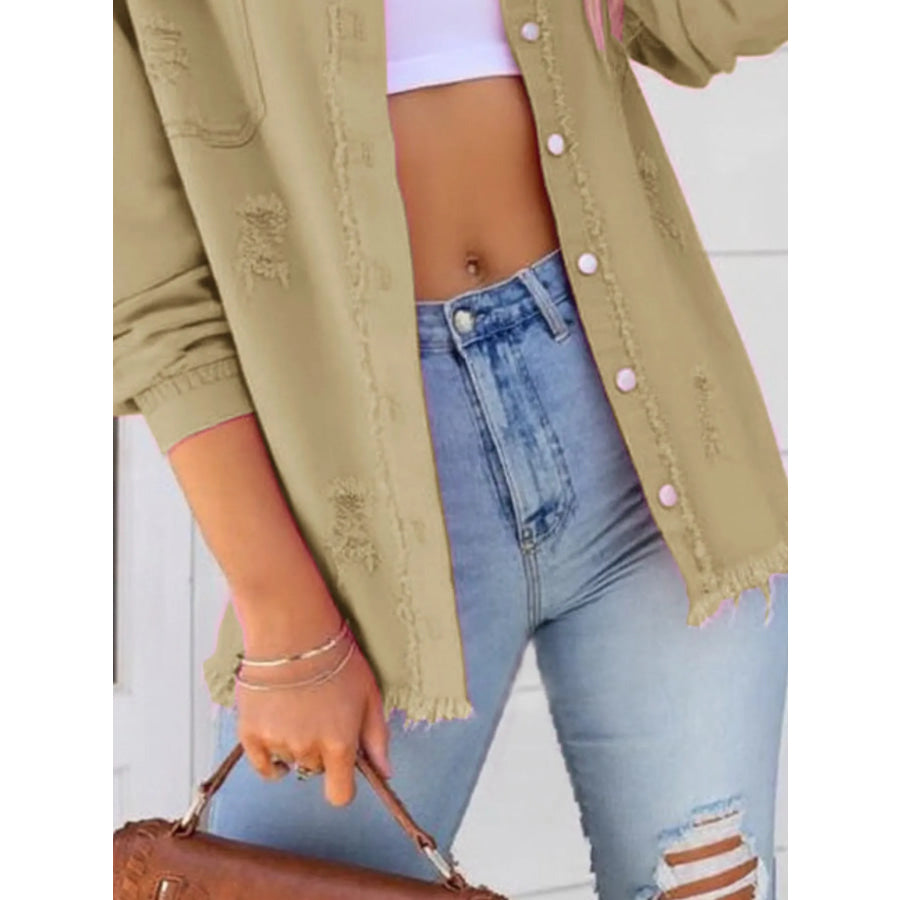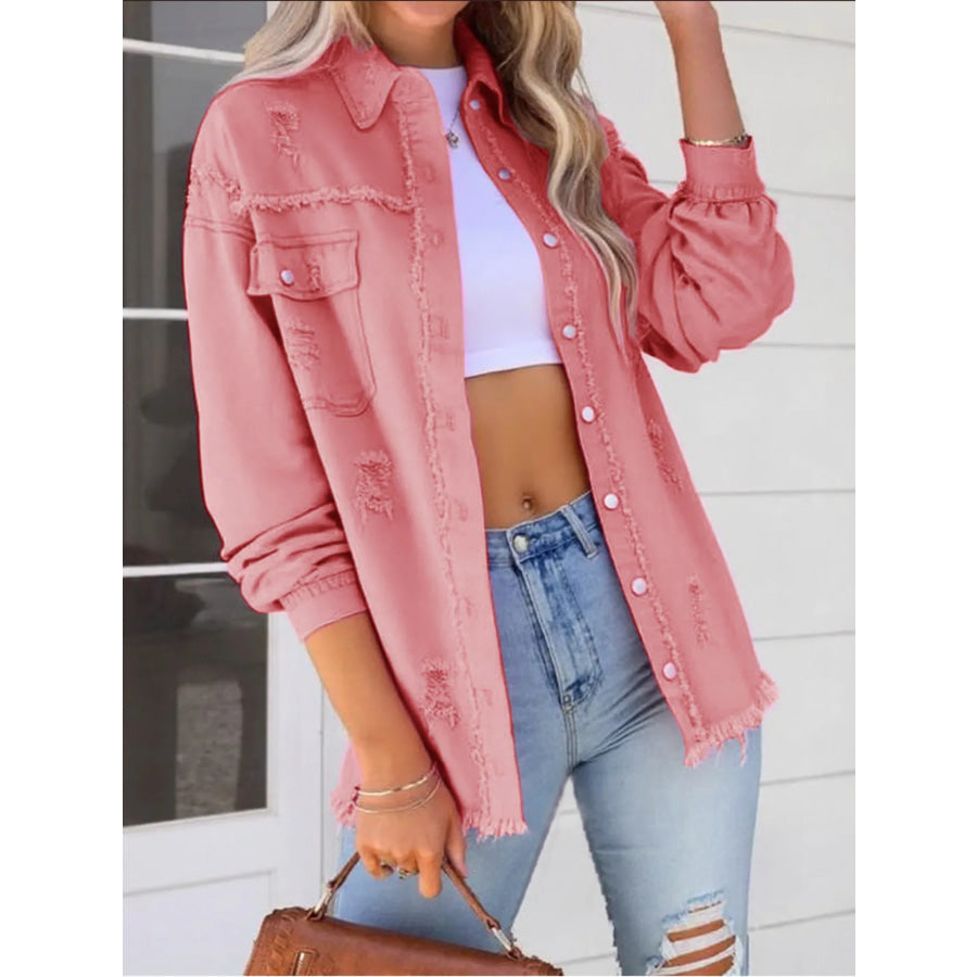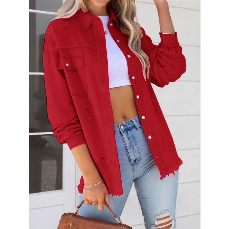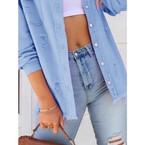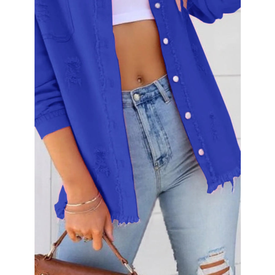 • Features:Oversized,Distressed,Buttoned,Pocketed