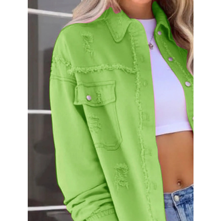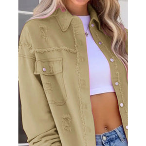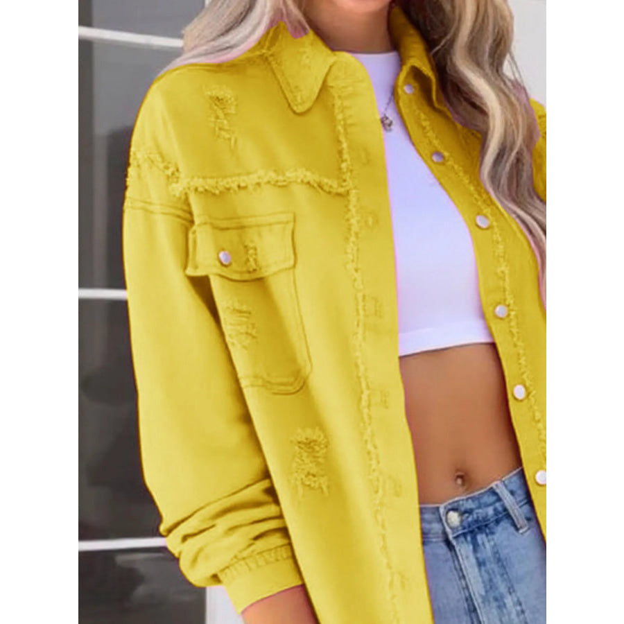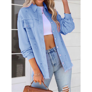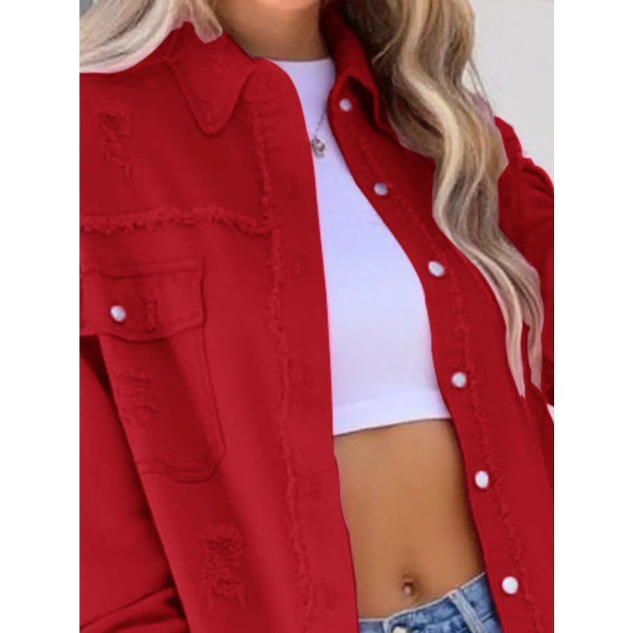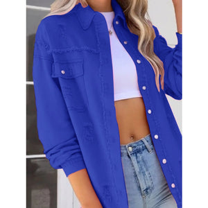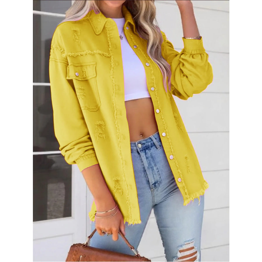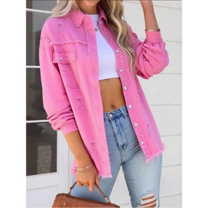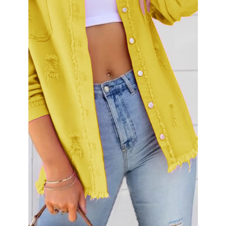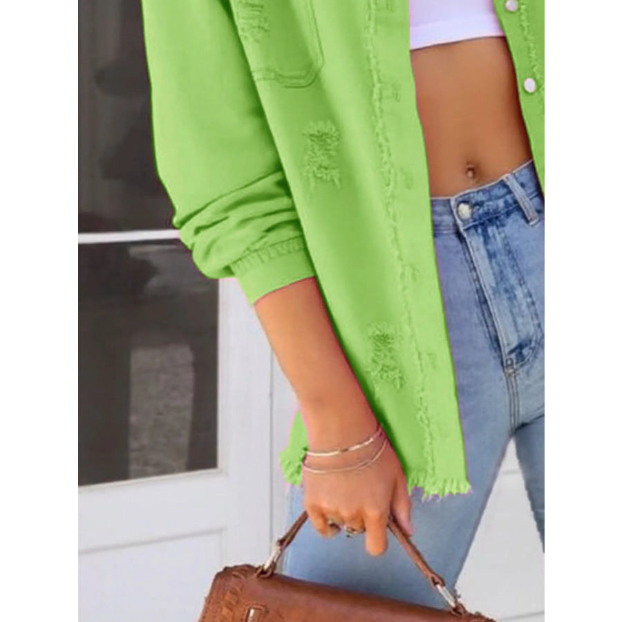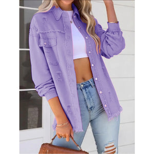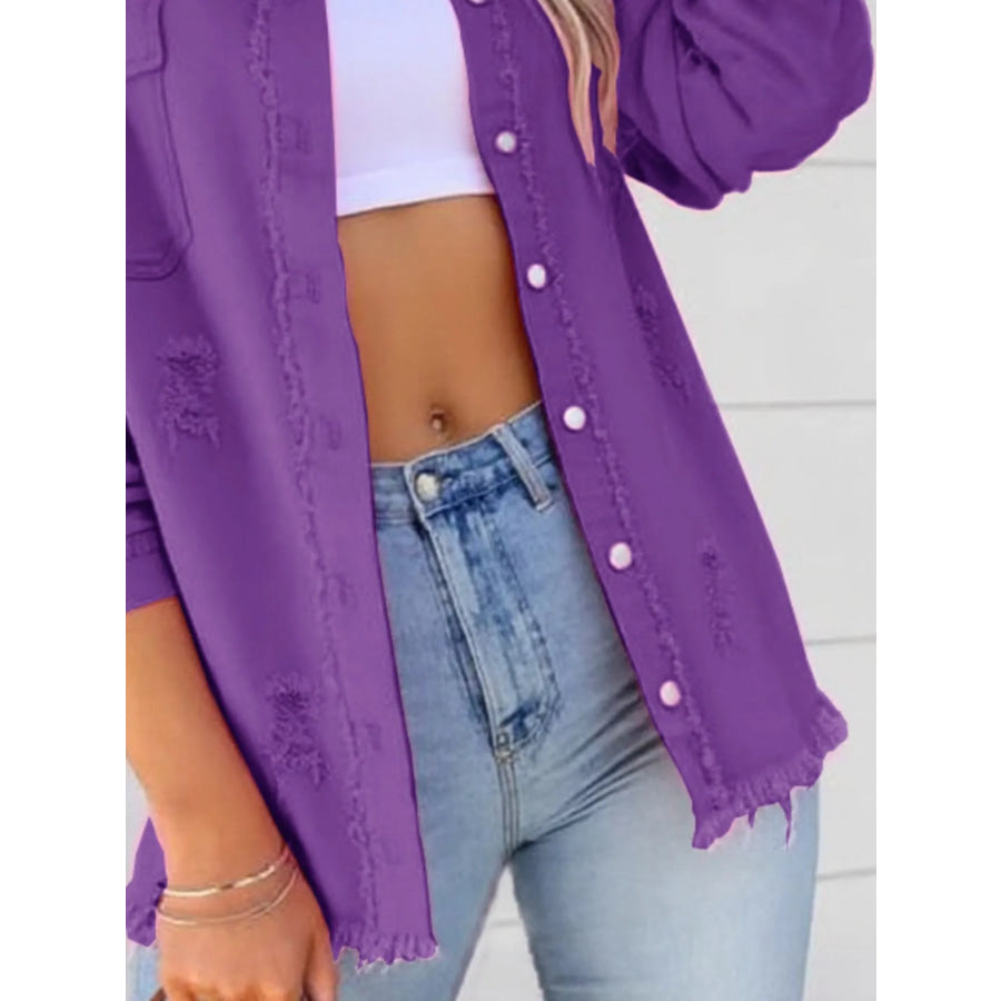 • Features:Oversized,Distressed,Buttoned,Pocketed
