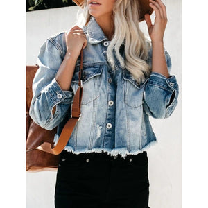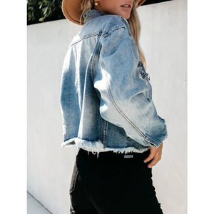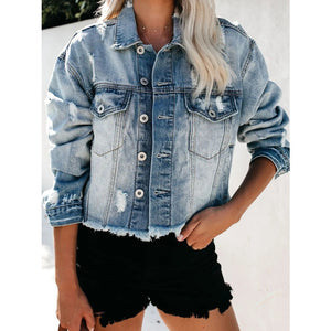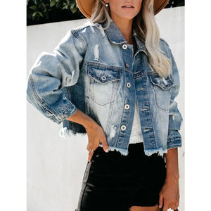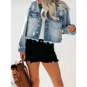 Distressed Raw Hem Denim Jacket