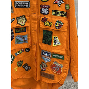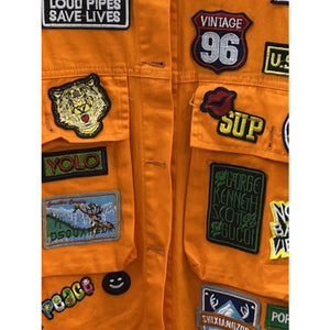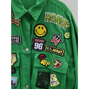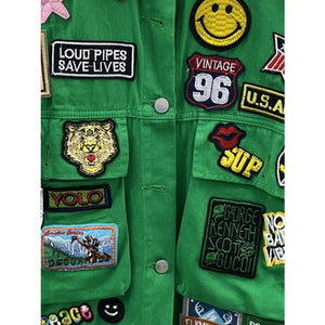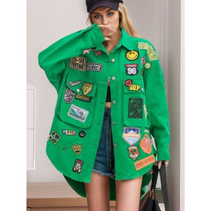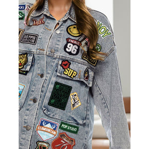 Embroidered Patch Button Up Long Sleeve Denim Jacket