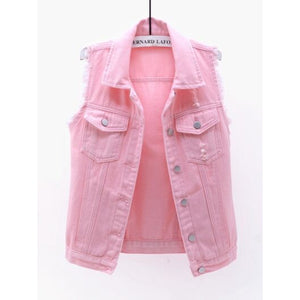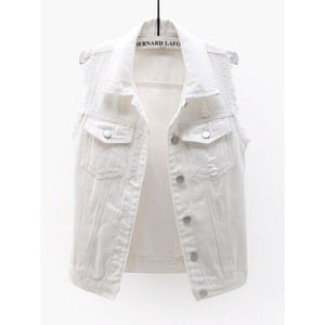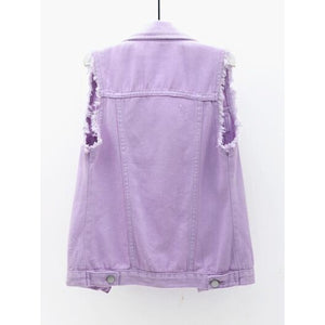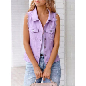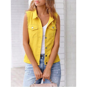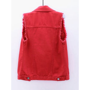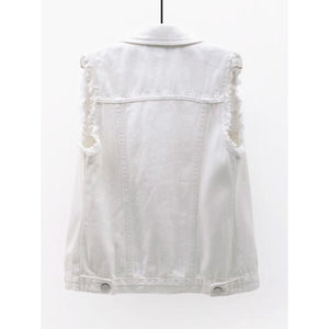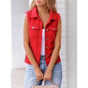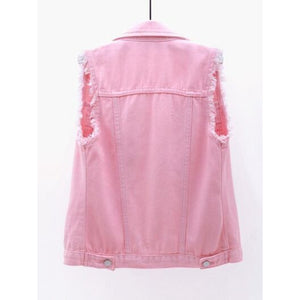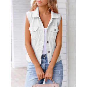 Full Size Button Down Raw Hem Sleeveless Denim Jacket Plus Size