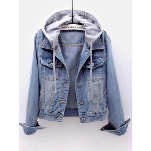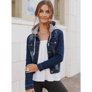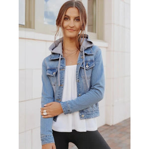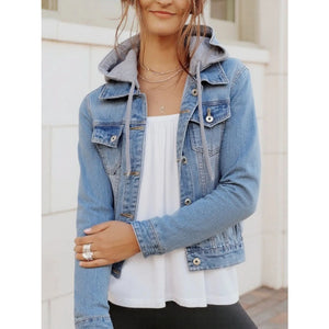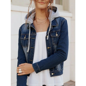 Full Size Button Up Drawstring Hooded Denim Jacket Plus Size