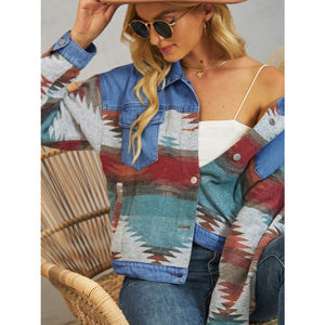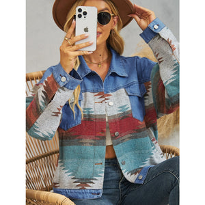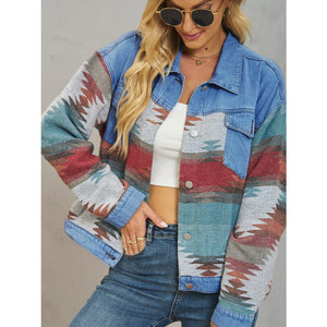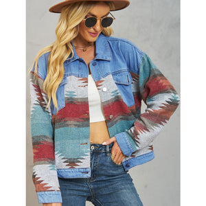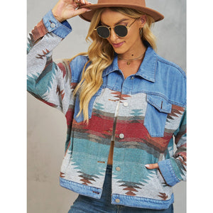 Geometric Button Up Dropped Shoulder Denim Jacket