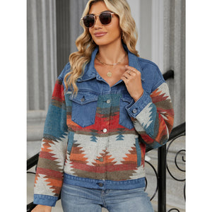 Geometric Button Up Long Sleeve Denim Jacket