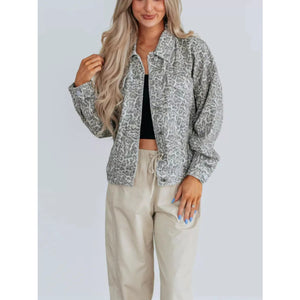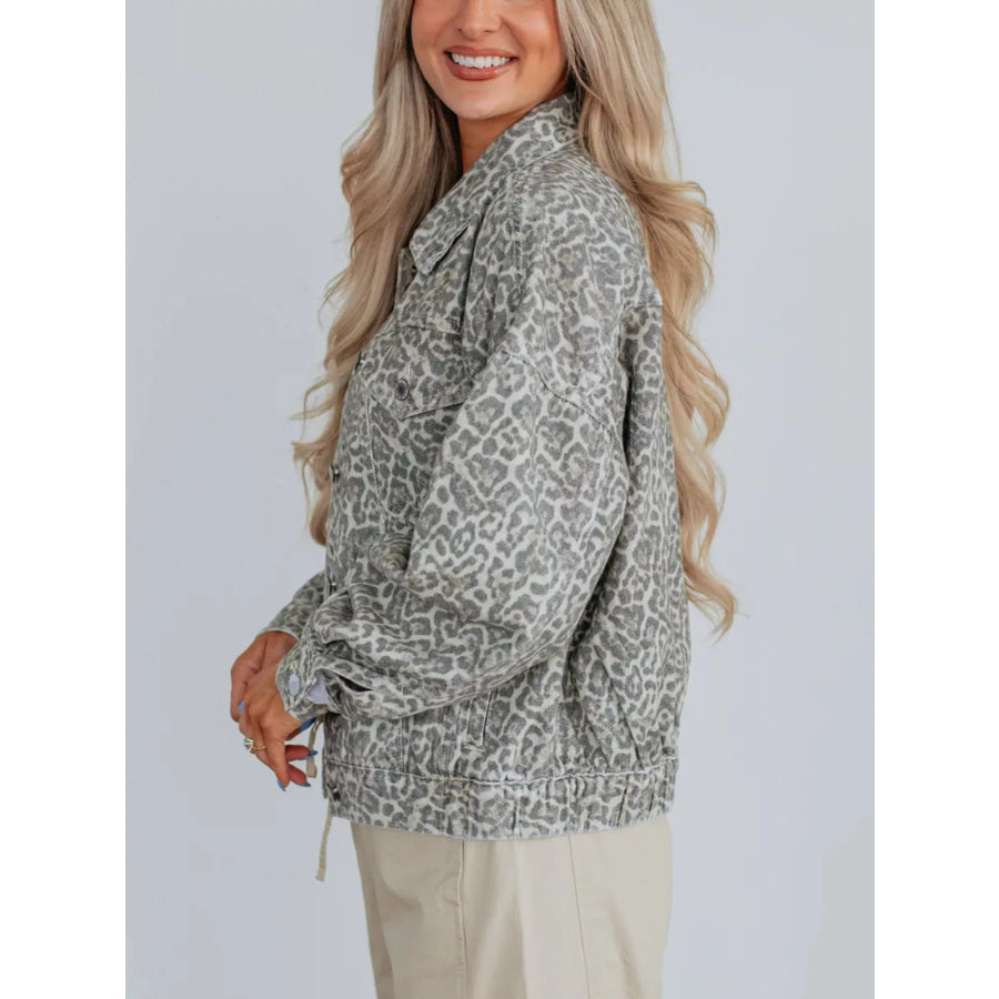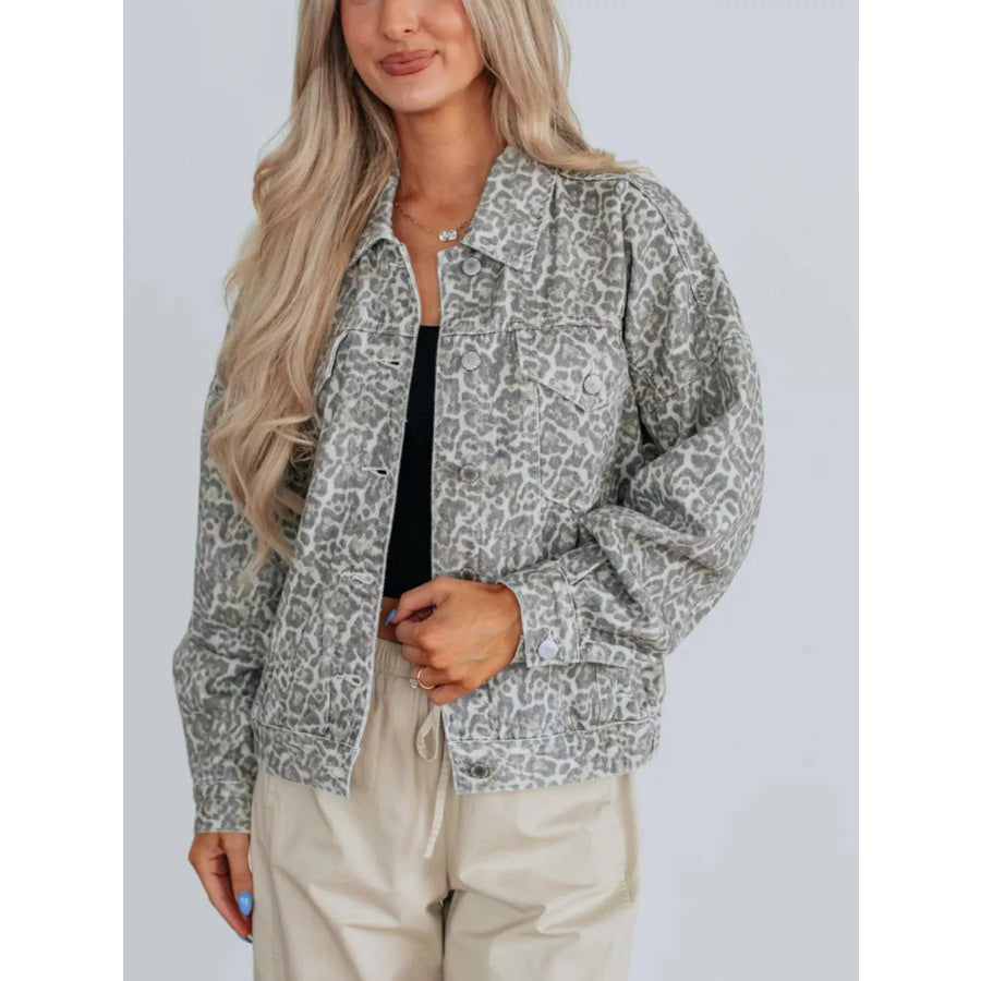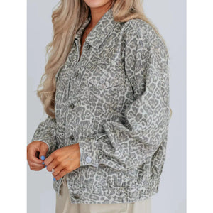 Leopard Button Up Denim Jacket