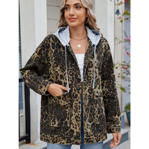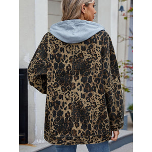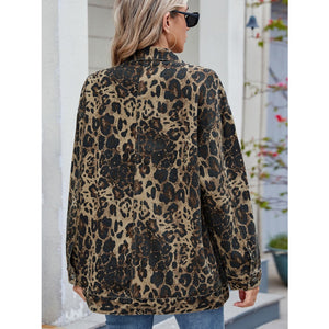 Leopard Button Up Drop Shoulder Denim Jacket