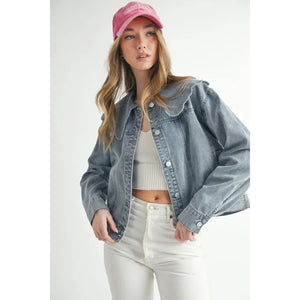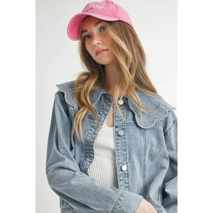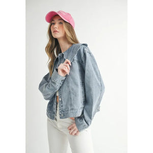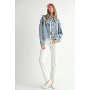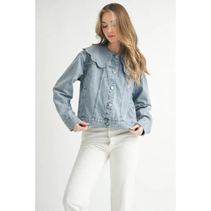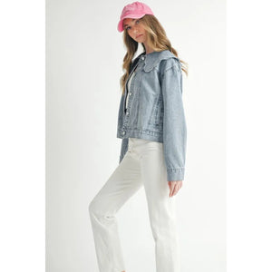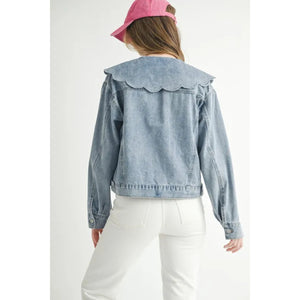 MABLE Scallop Peter Pan Collar Denim Jacket