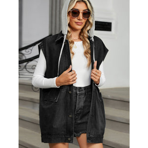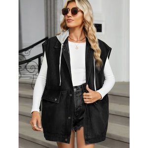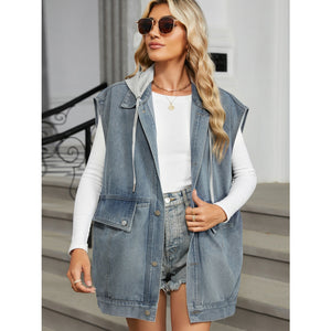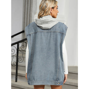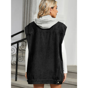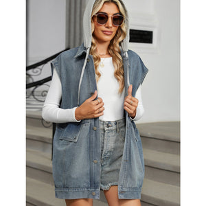 Removable Hood Button Up Cap Sleeve Denim Jacket