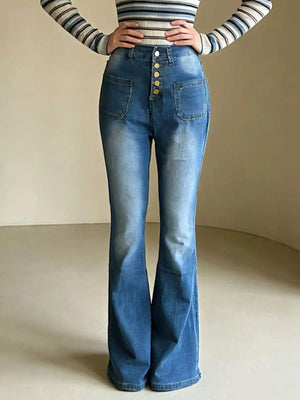 Full Size High-Waisted Button-Fly Flare Jeans Plus Size