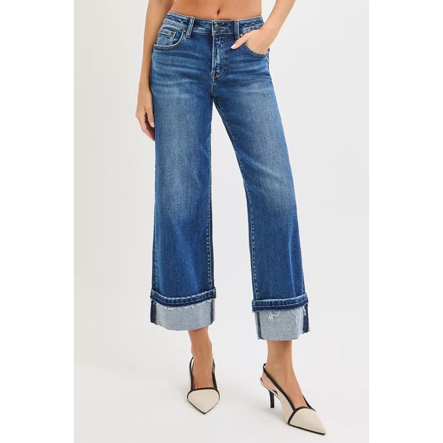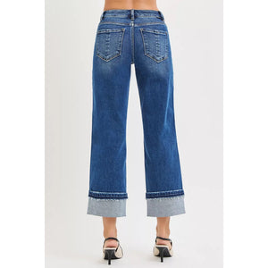 RISEN Mid Rise Ankle Straight Jeans with Cuffed Hem
