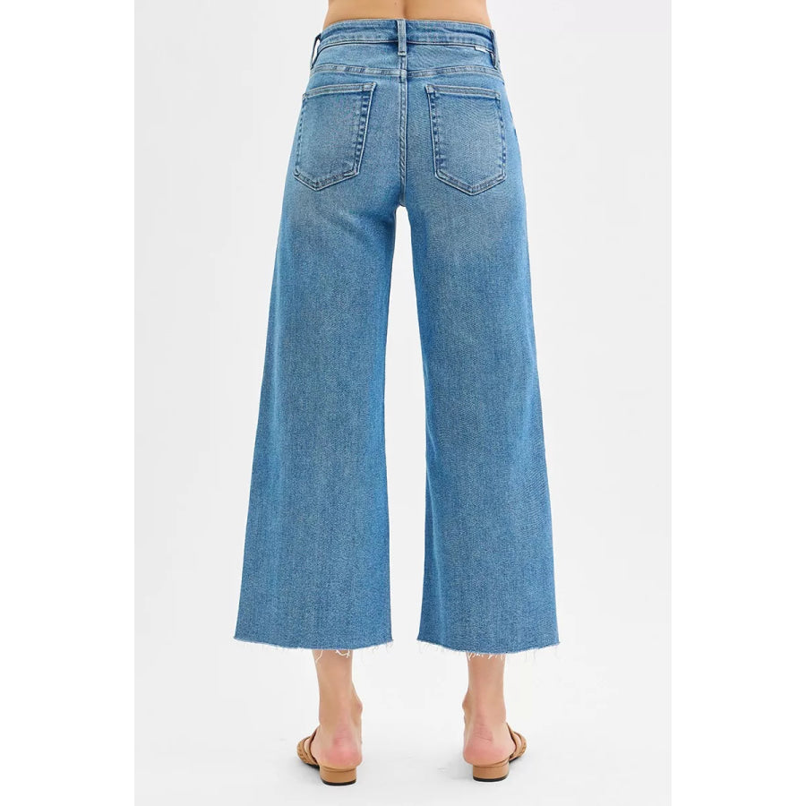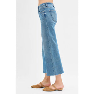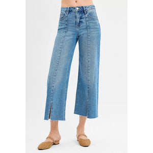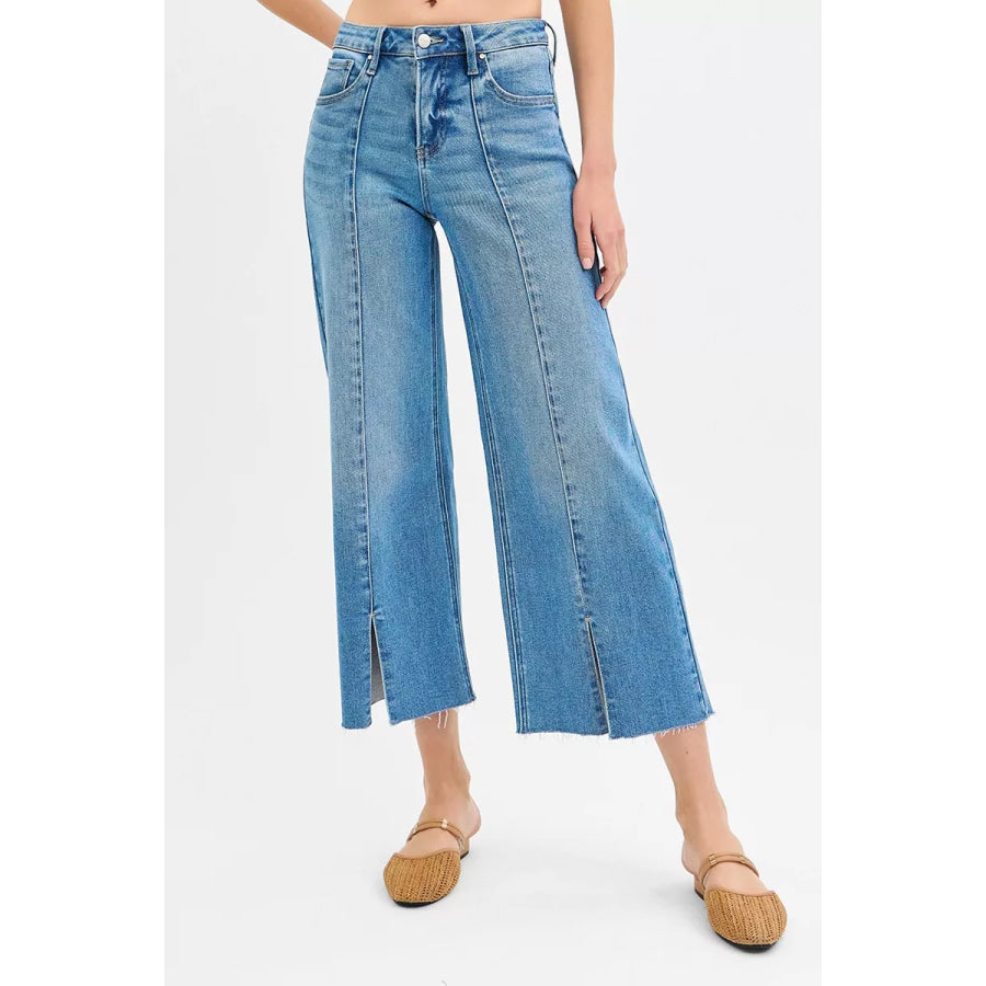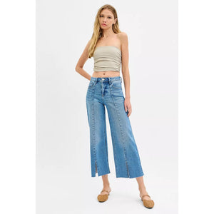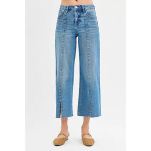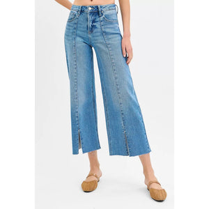 RISEN Tummy Control Mid Rise Crop Wide Front Slit Jeans