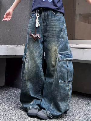 Vintage Wash Wide Leg Cargo Jeans
