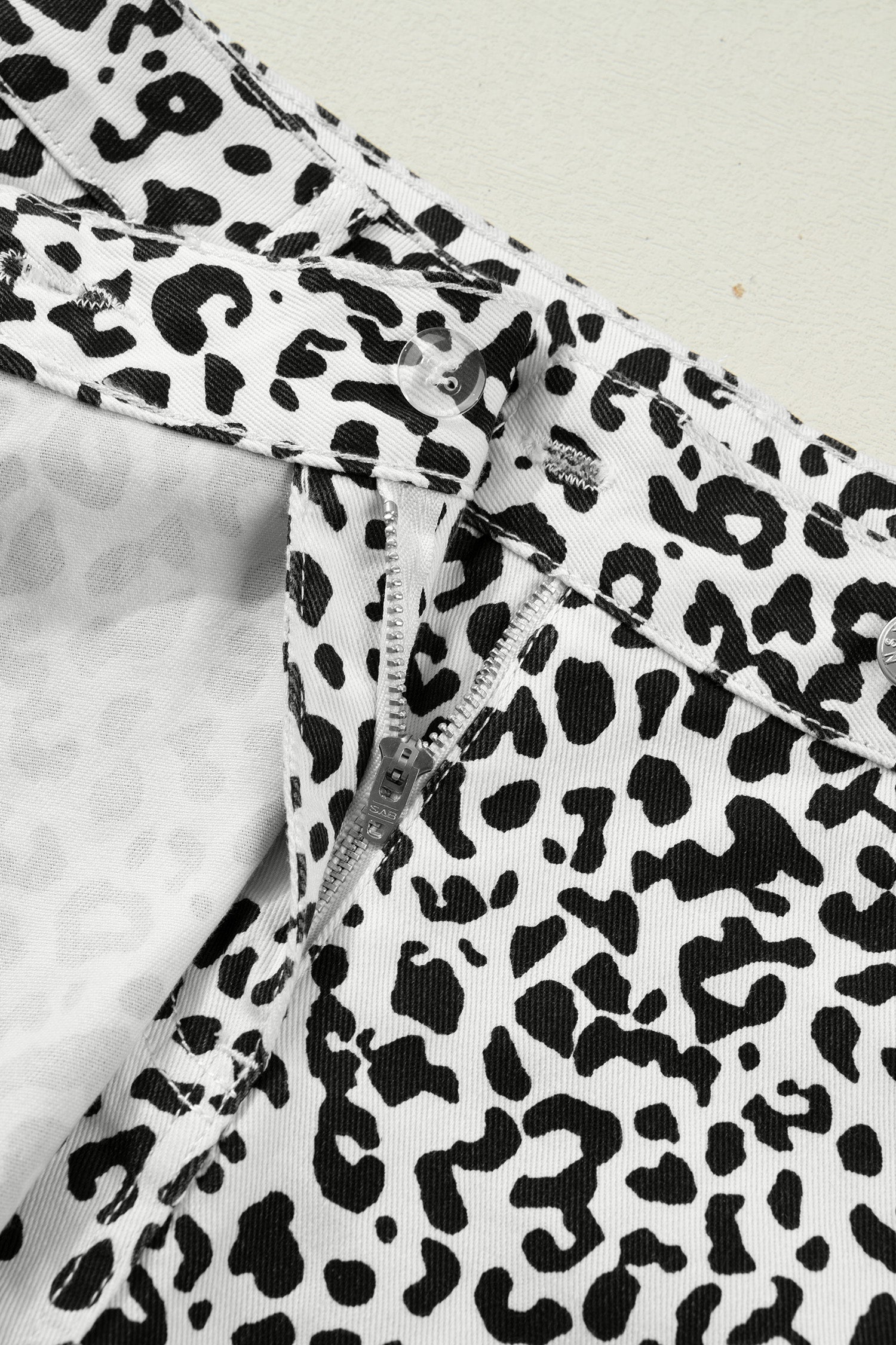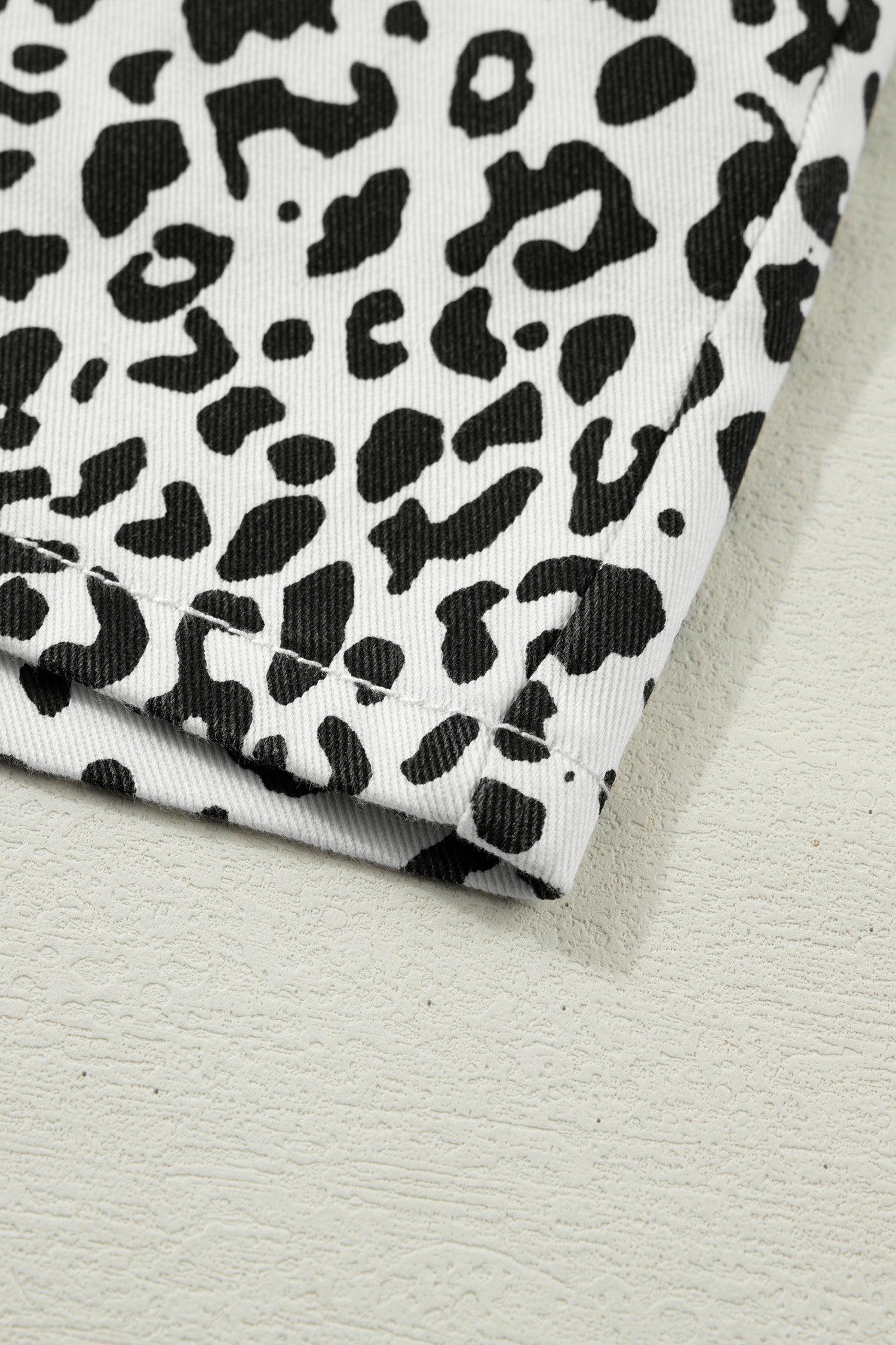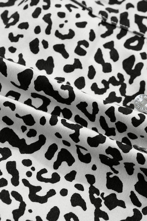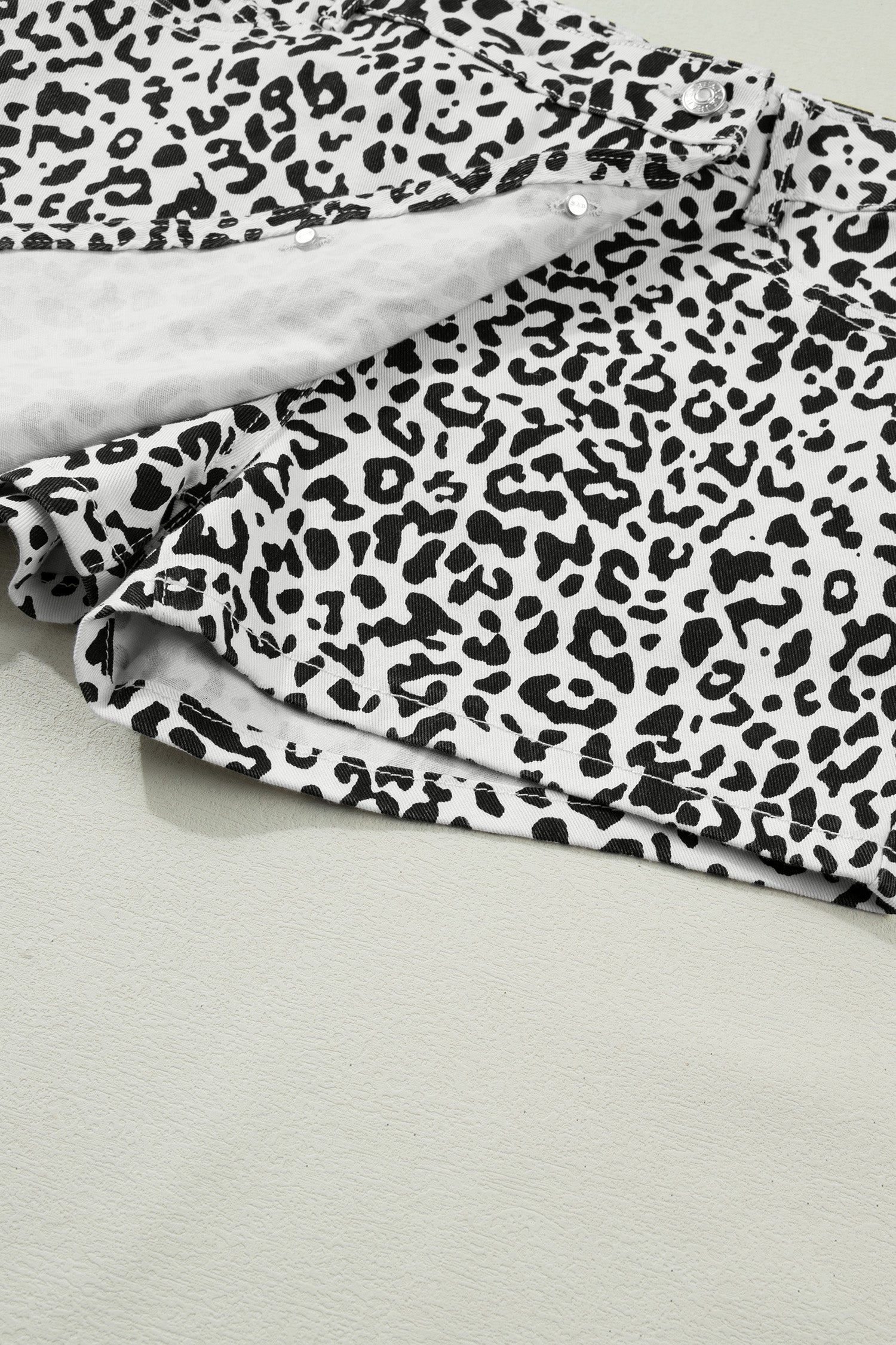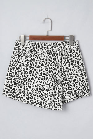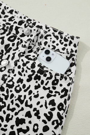 • The leopard denim shorts are wild and free.