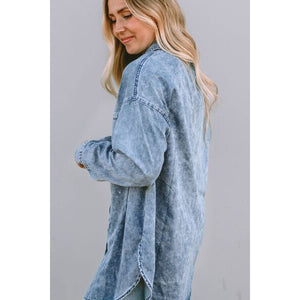 Button Up Dropped Shoulder Denim Top