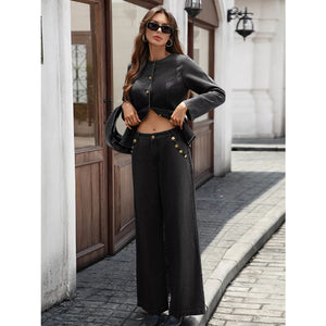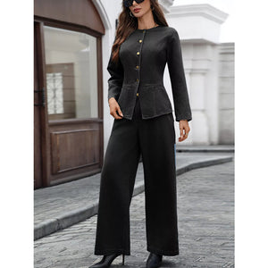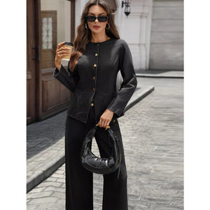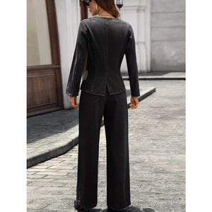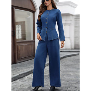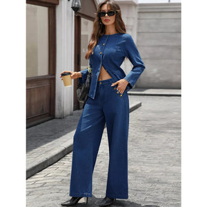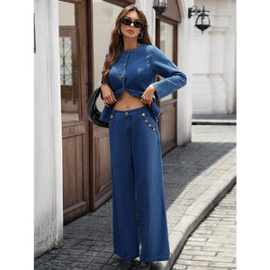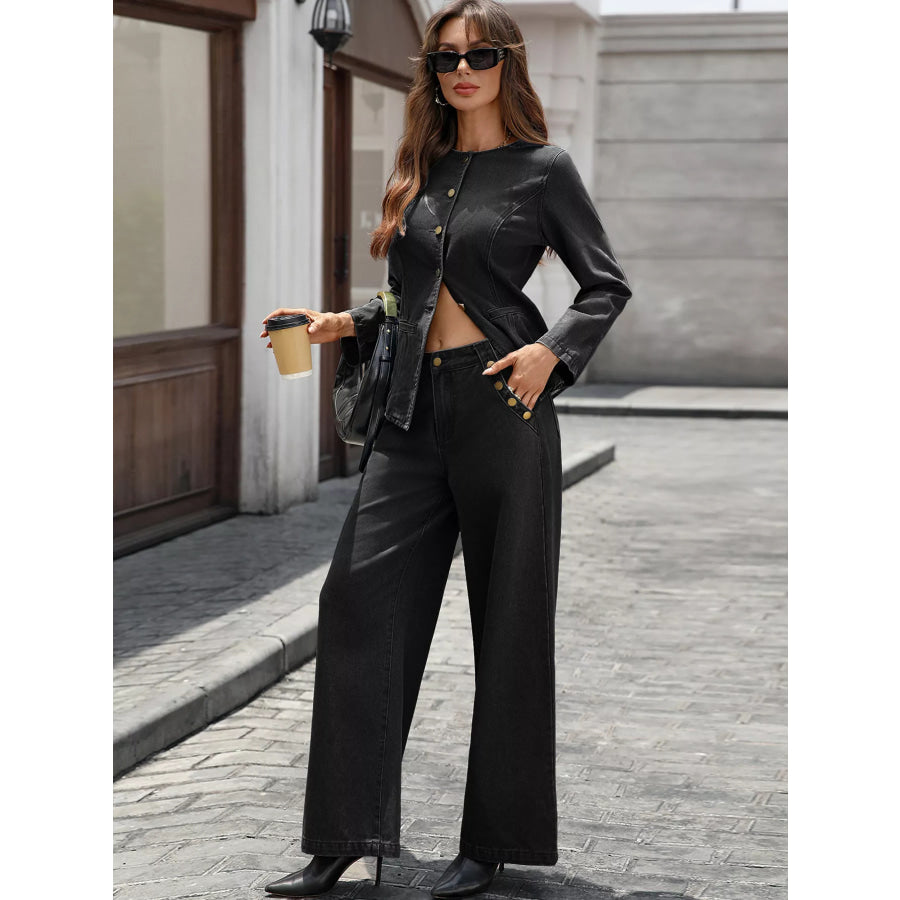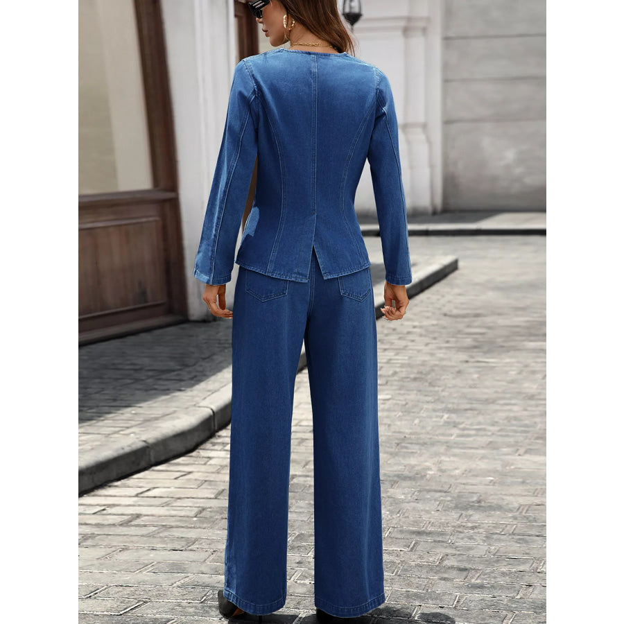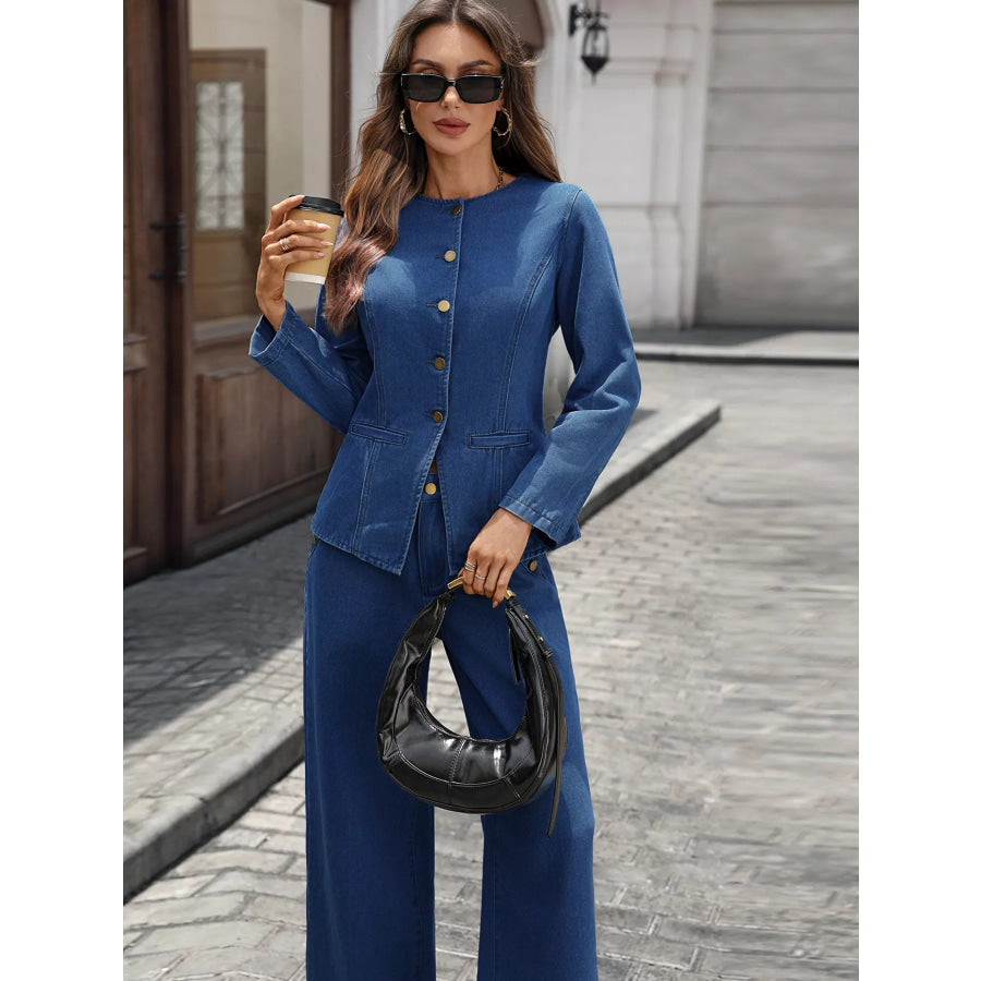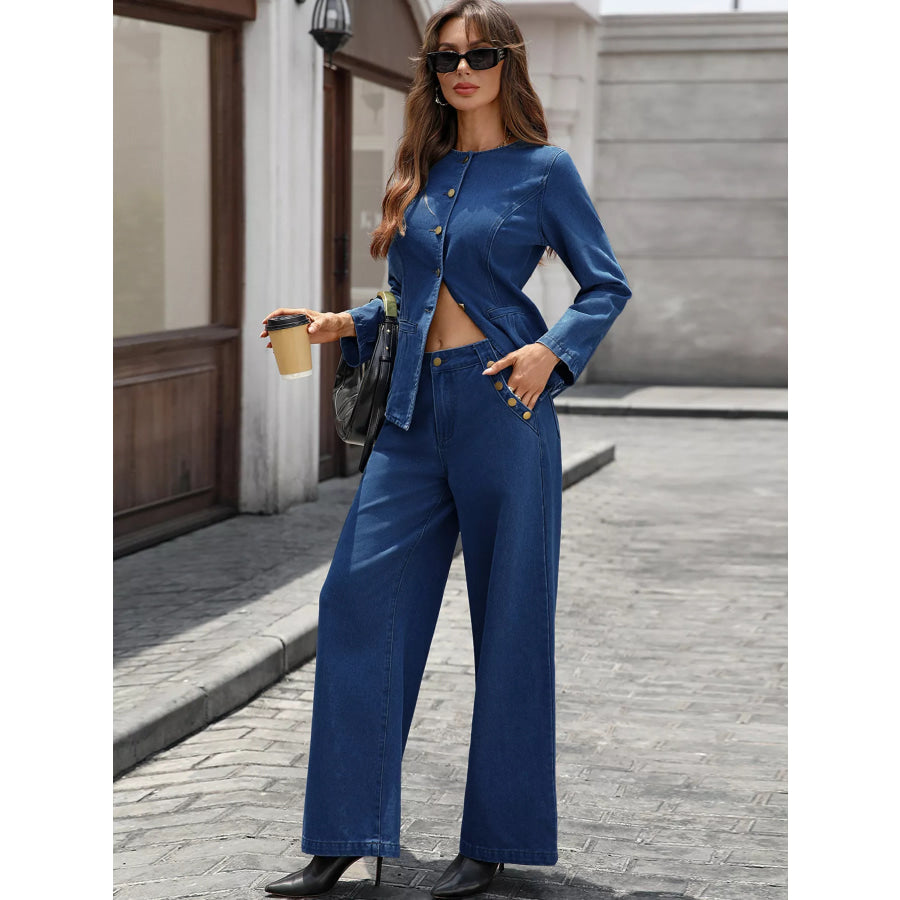 Button Up Long Sleeve Top and Jeans Denim Set