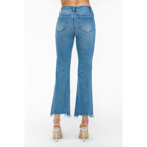 bytos Raw Hem Distressed Mid Rise Crop Jeans