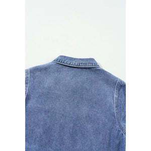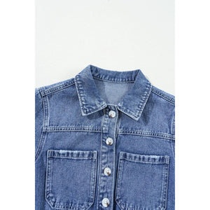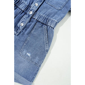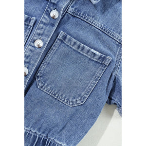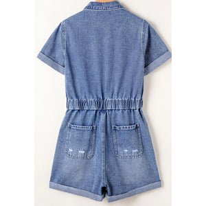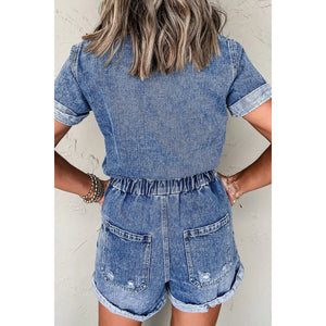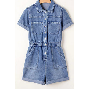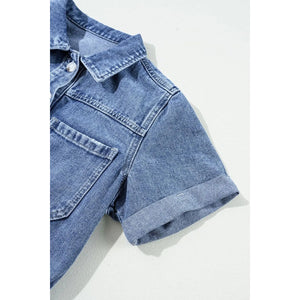 Chest Pocket Front Buttoned Folded Edge Denim Short Sleeve Romper