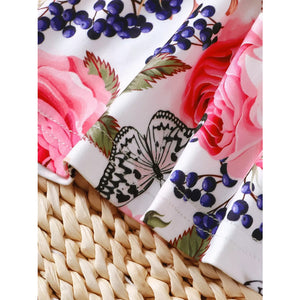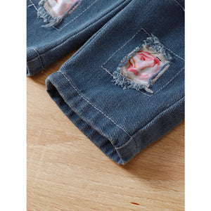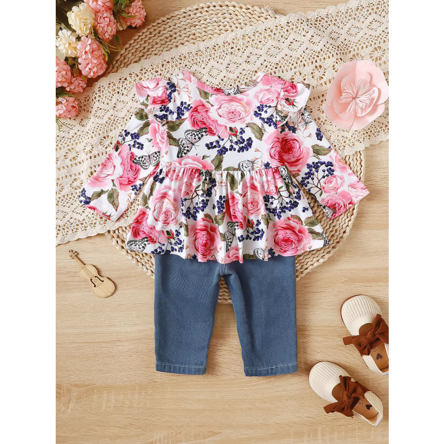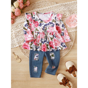 Children's Floral Ruffle Trim Top & Distressed Jeans Set