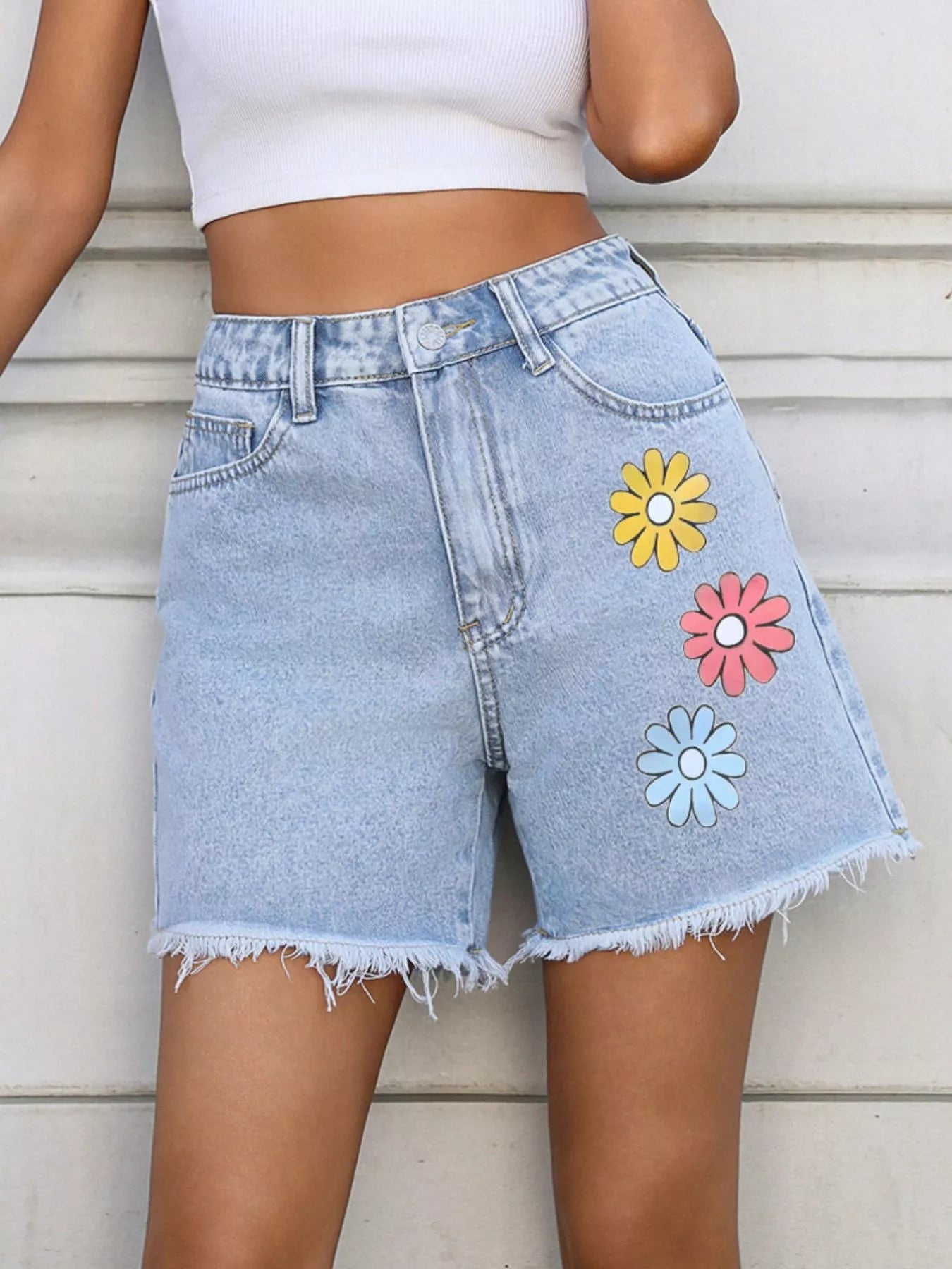 Daisy Frayed Hem Denim Shorts