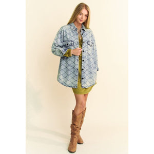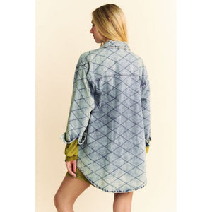 Davi & Dani Curved Hem Diamond Quilted Button Up Denim Shacket