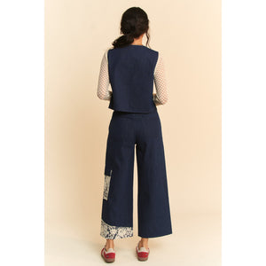 Davi & Dani Lace Applique Wide Leg Jeans