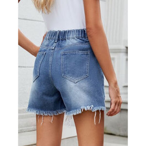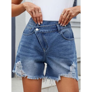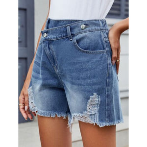 Distressed Raw Hem Asymmetrical Waist Denim Shorts