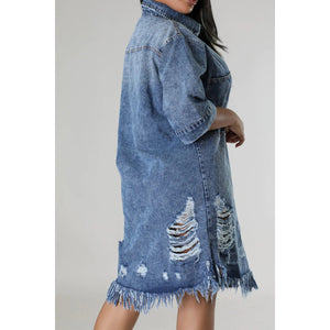 • Features: Washed, Distressed, Buttoned, Raw Hem, Pocketed