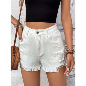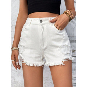 • Features: Distressed, Raw Hem, Buttoned, Pocketed