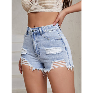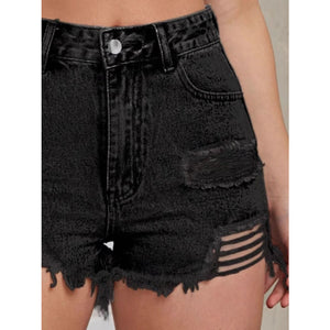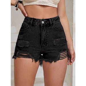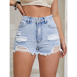 Distressed Raw Hem High Waist Denim Shorts