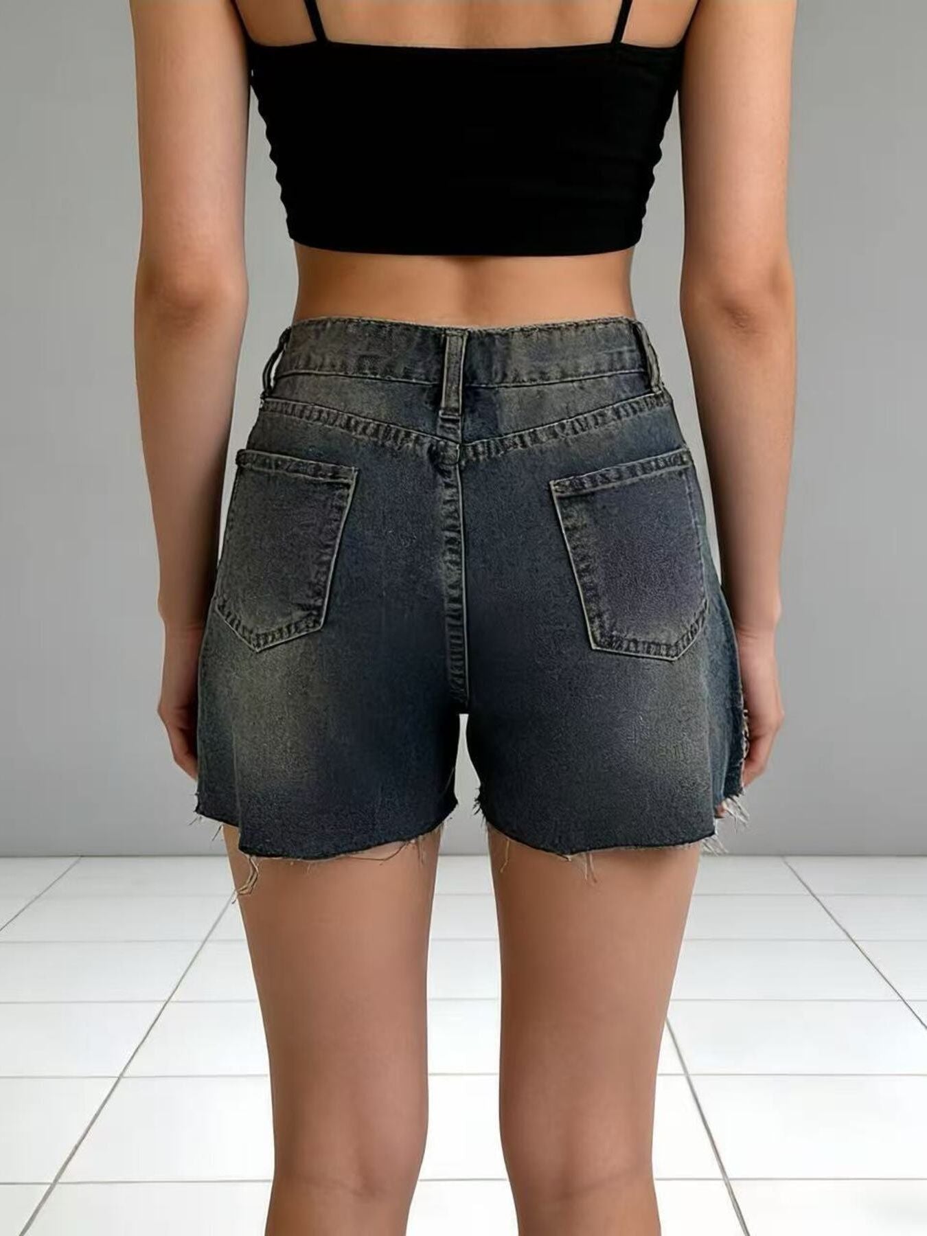Distressed Slit Denim Shorts
