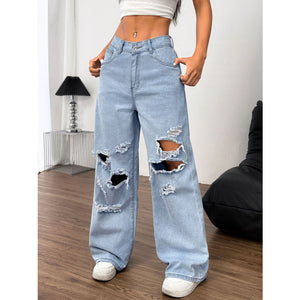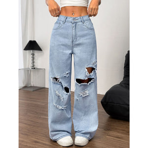 Distressed Wide Leg Jeans with Pockets
