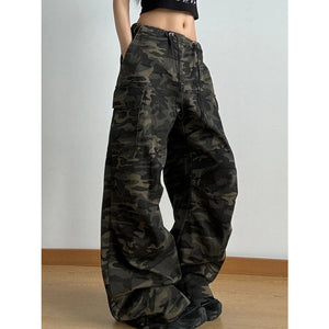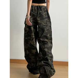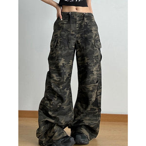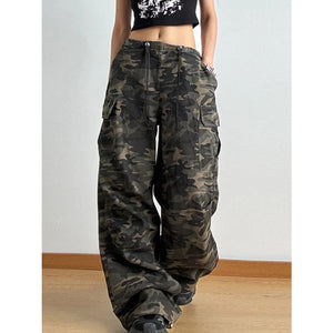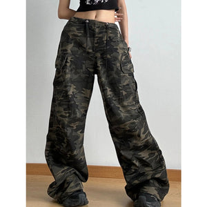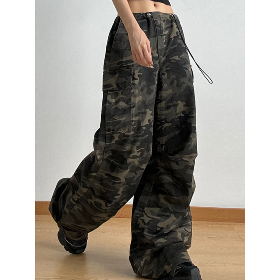 Drawstring Camouflage Cargo Wide Leg Jeans