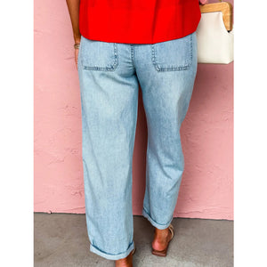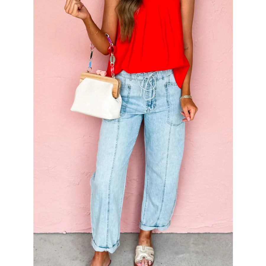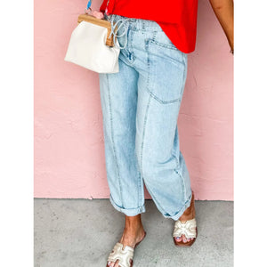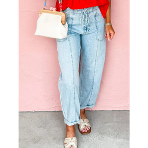 Drawstring Washed Relaxed Fit Boyfriend Jeans