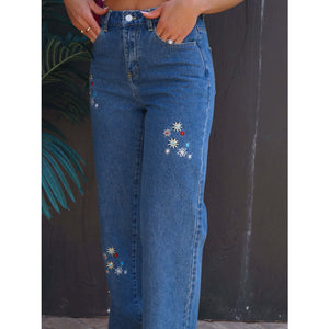 Embroidered Straight Jeans with Pockets