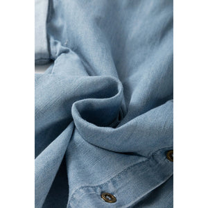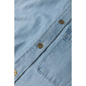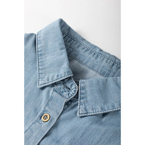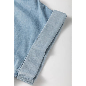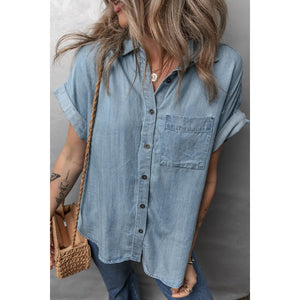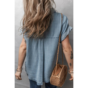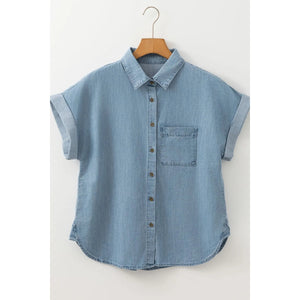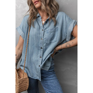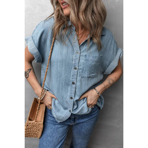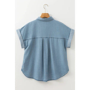 Folded Short Sleeve Patched Pocket Denim Shirt