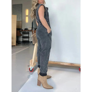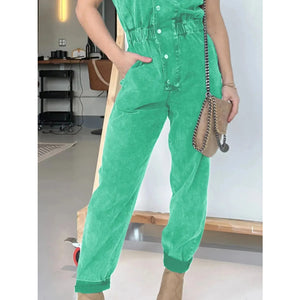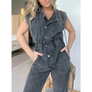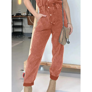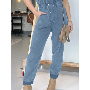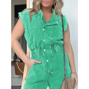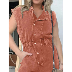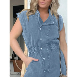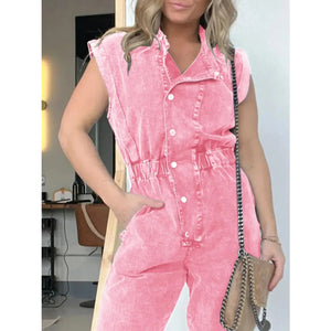 Full Size Button Front Cap Sleeve Denim Jumpsuit Plus Size