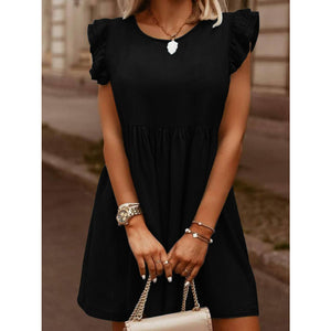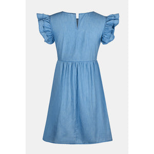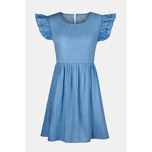 Full Size Ruffled Round Neck Cap Sleeve Denim Dress