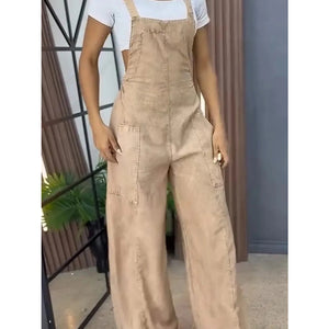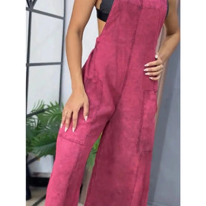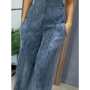 Full Size Wide Leg Washed Denim Overalls Plus Size