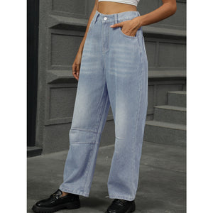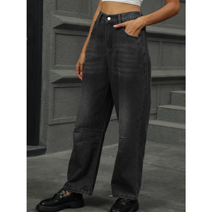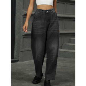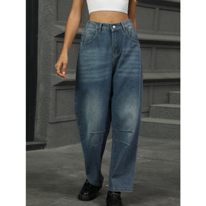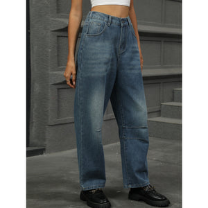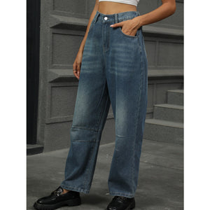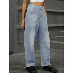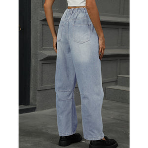 Half Elastic Waist Straight Leg Jeans