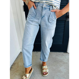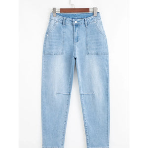 High Rise Barrel Relaxed Patch Pocket Jeans