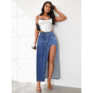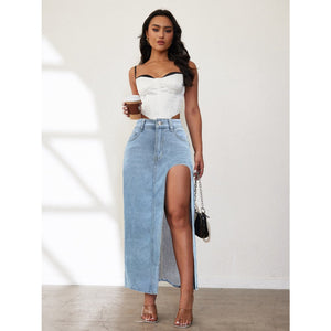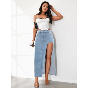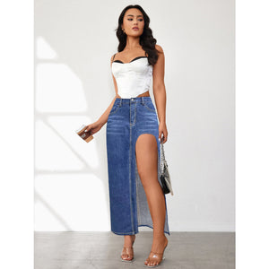 High Rise Slit Denim Skirt