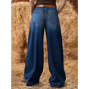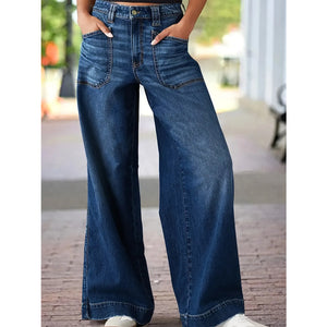 High Waist Wide Leg Wash Jeans