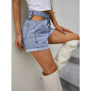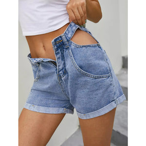 High-Waisted Cutout Denim Shorts