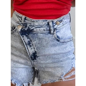 High Waisted Distressed Denim Shorts with Frayed Hem
