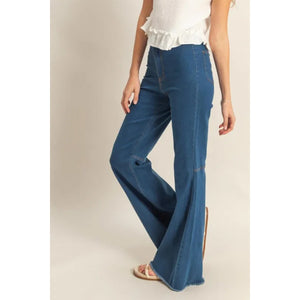 HYFVE Raw Hem High-Waist Washed Flared Jeans