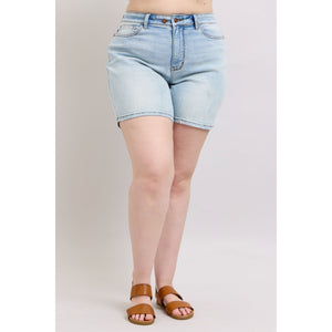 Judy Blue Full Size 2 Button Denim Shorts with Pockets Plus Size